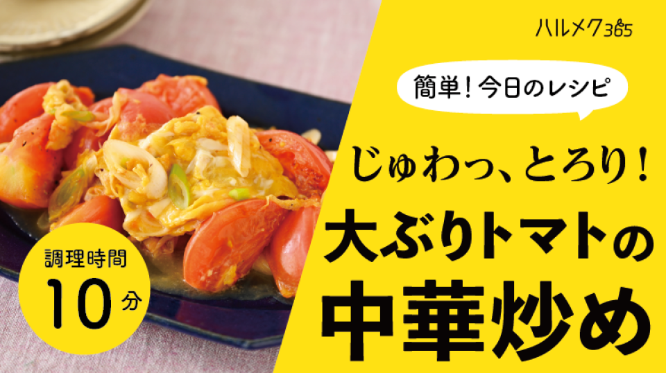 じゅわっととろけるトマトに、ふわふわの卵が絡んだ中華風味の炒めもの。トマトはじっくり焼き固めることで、崩れずにくくなります。