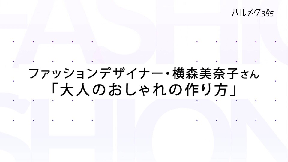 ファッションデザイナー・横森美奈子さんが、あなたを素敵に見せる着こなし術について、実演を交えてわかりやすく解説します。