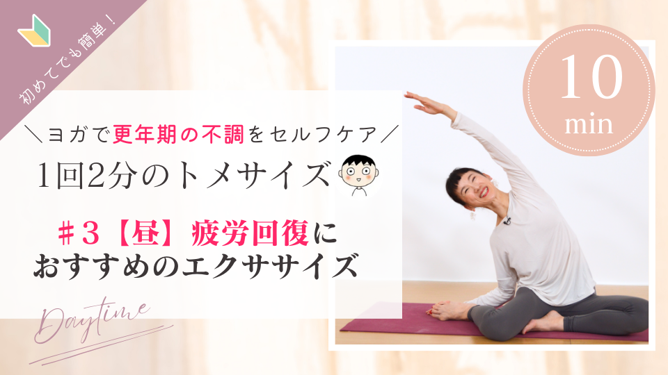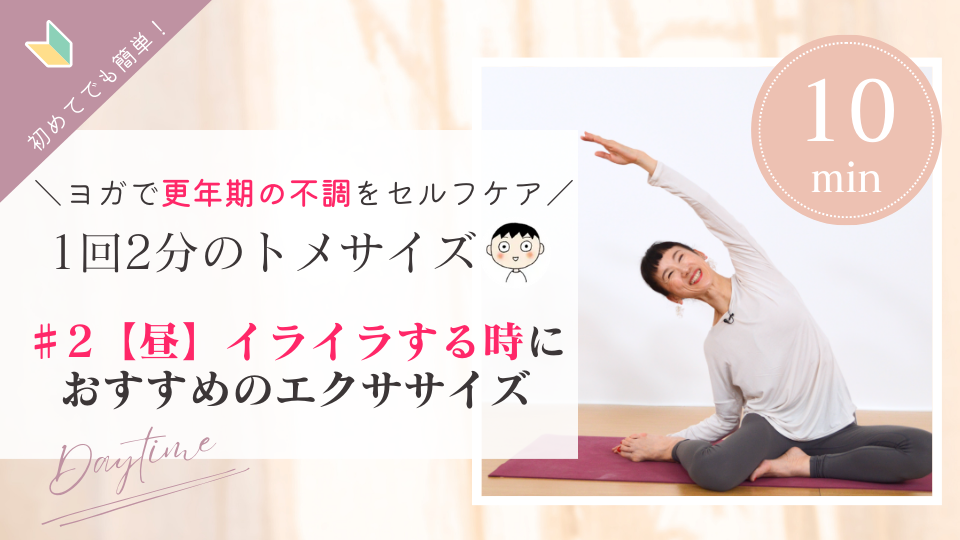 イラストレーター、ヨガインストラクターの上大岡トメさんが紹介する、1回2分で心と体をケアするエクササイズ「トメサイズ」。ヨガには自律神経を整える効果があり更年期症状の改善も期待できます。朝・昼・夜、シーン別エクササイズでセルフケアしましょう!
