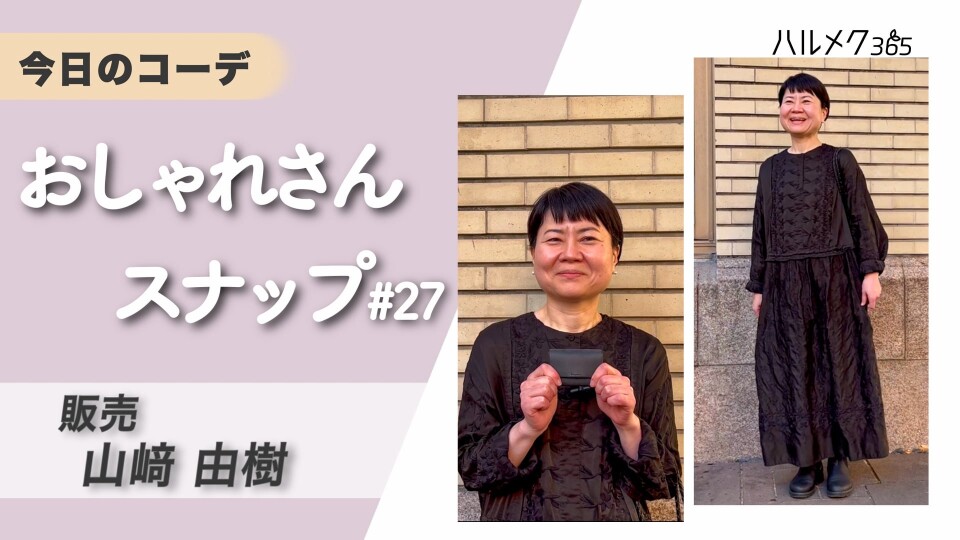 おしゃれさんスナップ第27回目は、前回までと同じ「桜井かおりさんトークショー@山の上ホテル」にご参加いただいた、九州在住の山﨑さん。甘くなりがちな刺しゅう入りワンピースを、黒でシックに大人っぽくまとめるコーデは参考になること間違いなし!