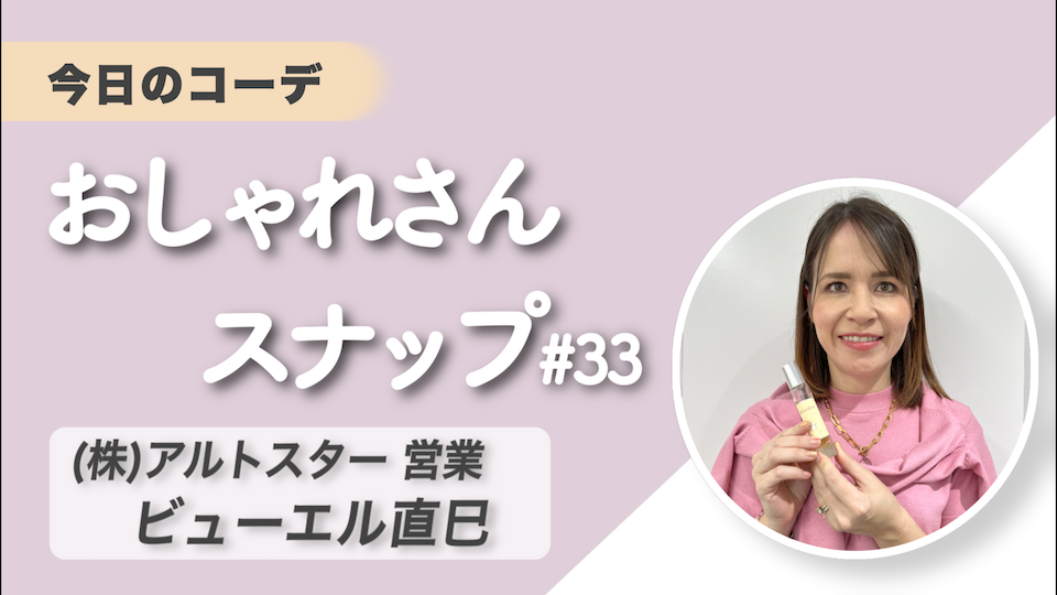 おしゃれさんスナップ第33回目は、(株)アルトスター営業担当のビューエル直巳さん。