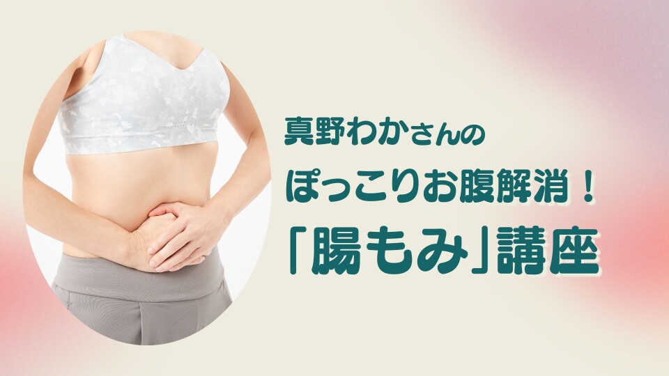 今回の講座では、自分の手でやさしくもみほぐす「腸もみ」、筋肉に刺激を与えて引き締め効果もある「腸活エクササイズ」の正しいやり方を、腸もみのプロ・真野わかさんに教わります。