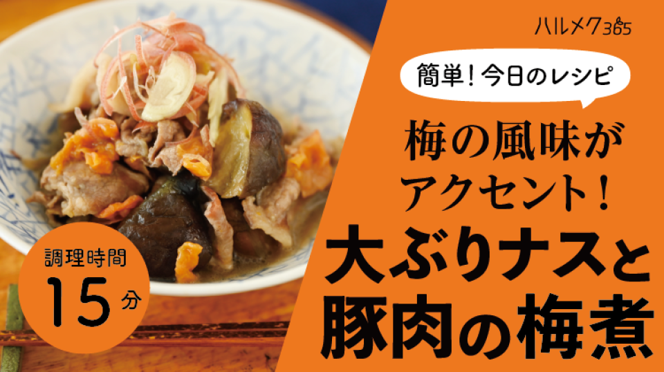 梅の風味がアクセント!大ぶりナスと豚肉の梅煮