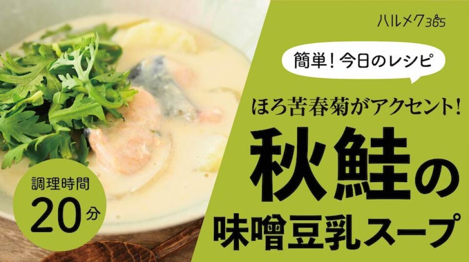 ほろ苦春菊がアクセント!秋鮭の味噌豆乳スープ