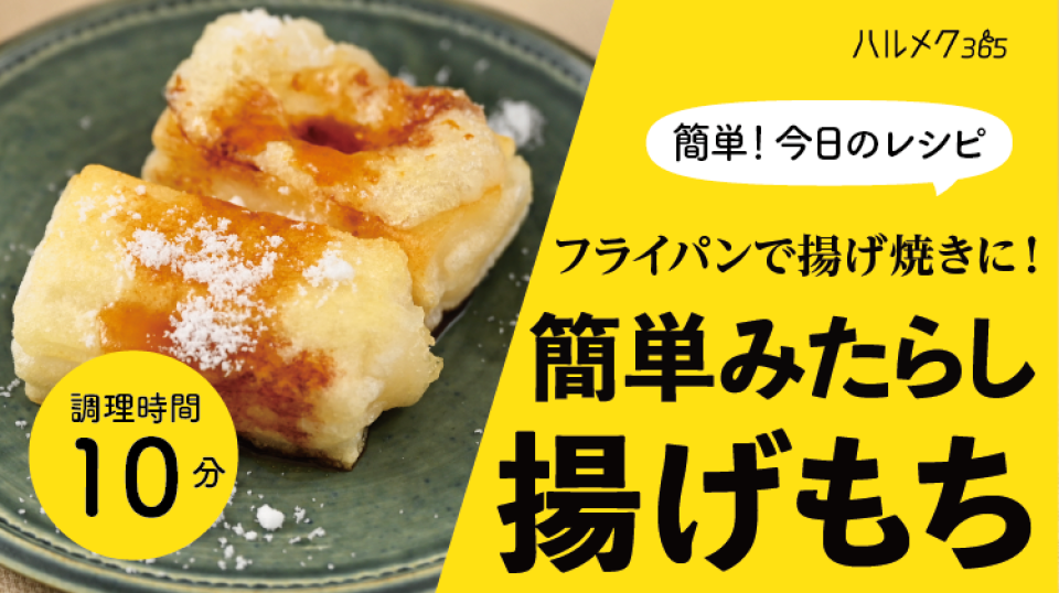 表面をサクサクに揚げた餅に、砂糖と醤油だけでみたらしのような味つけに。
