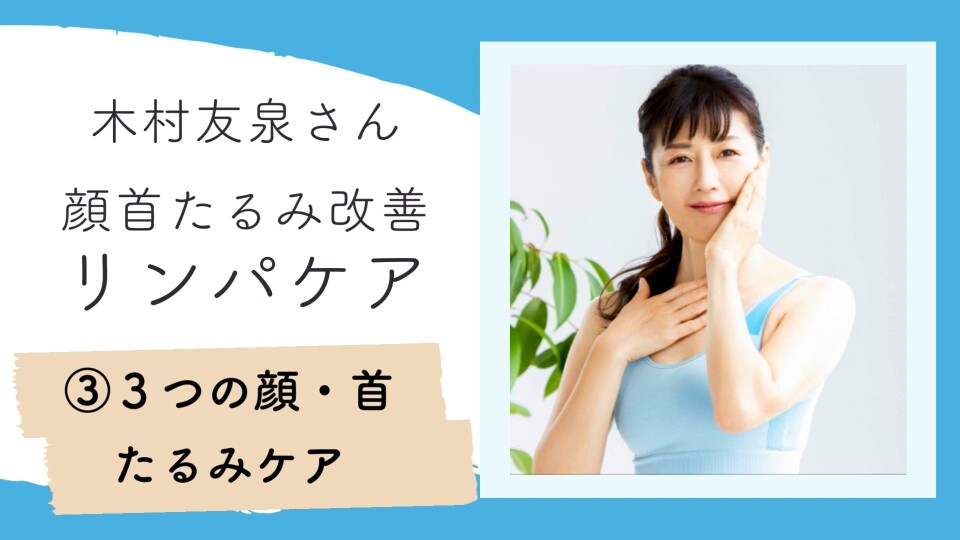顔のたるみ、首のしわがみるみる薄くなる話題のケアをどこよりもわかりやすく解説する大人気・木村友泉さんのリンパケアレッスンです。