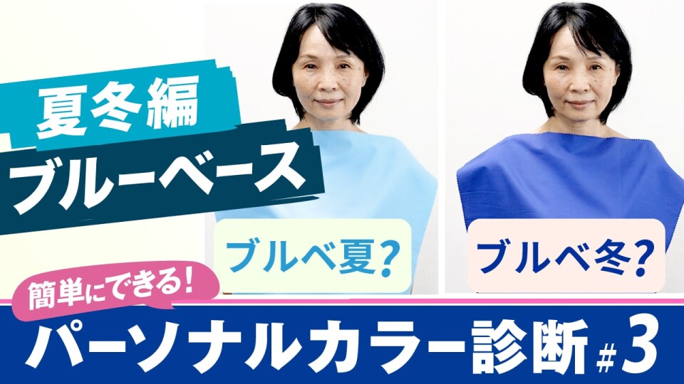 この動画では、パーソナルカラーイメージコンサルタント嵯峨裕美子さん監修のもと、「ブルーベース(ブルべ)」の方に向けて、「夏タイプ・冬タイプ」かを簡単セルフチェックで診断していきます。