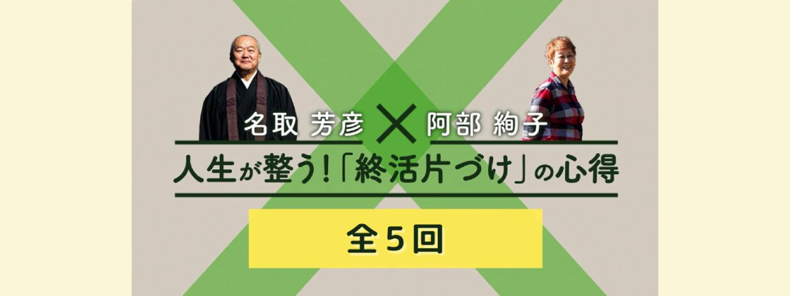 そんな悩めるみなさんに下町の住職・名取芳彦さんと70代の生活研究家・阿部絢子さんが「終活片づけ」への取り組み方を、軽快なトークで指南します。