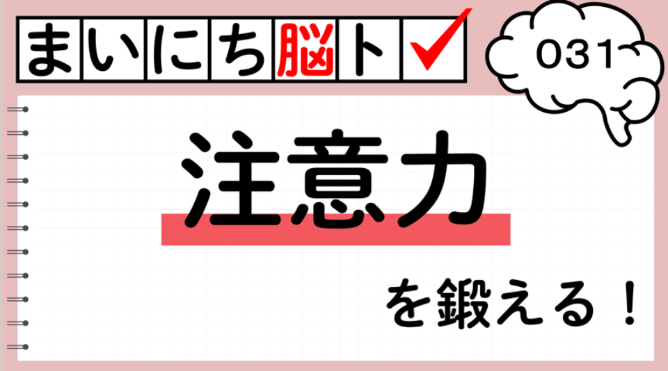 「最近物忘れが多くなった」「集中力が落ちてきた」……。そんな方にぜひ見ていただきたいのがこの番組。認知症研究の第一人者で筑波大学名誉教授・朝田隆先生監修の脳トレ問題に毎日コツコツ挑戦して、脳を活性化させましょう。